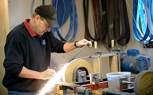 I started working right out of high school, in a machine shop in Bakersfield, California in 1980. In 1984, I made my first knife after I watched one of the "Ol' Timers" that worked in the shop turn an old file into a knife. From that moment on, I was hooked. I made my first knife and fell in love with the wonderful 'hit and miss' hobby. It quickly became great for Birthday and Christmas gifts for my family and friends. Then back around 2005, I made my brother a knife as a Birthday gift, but just before I sent it off to Arizona, I took it to the shop to show it off a bit. Needless to say, they liked it and told me I should make and sell them here, (all over Michigan) at the local knife/gun shows on the occasional weekends. As the saying goes, "one thing led to another" and I've been blessed with the opportunity to make custom knives, full time now for over 10 years.