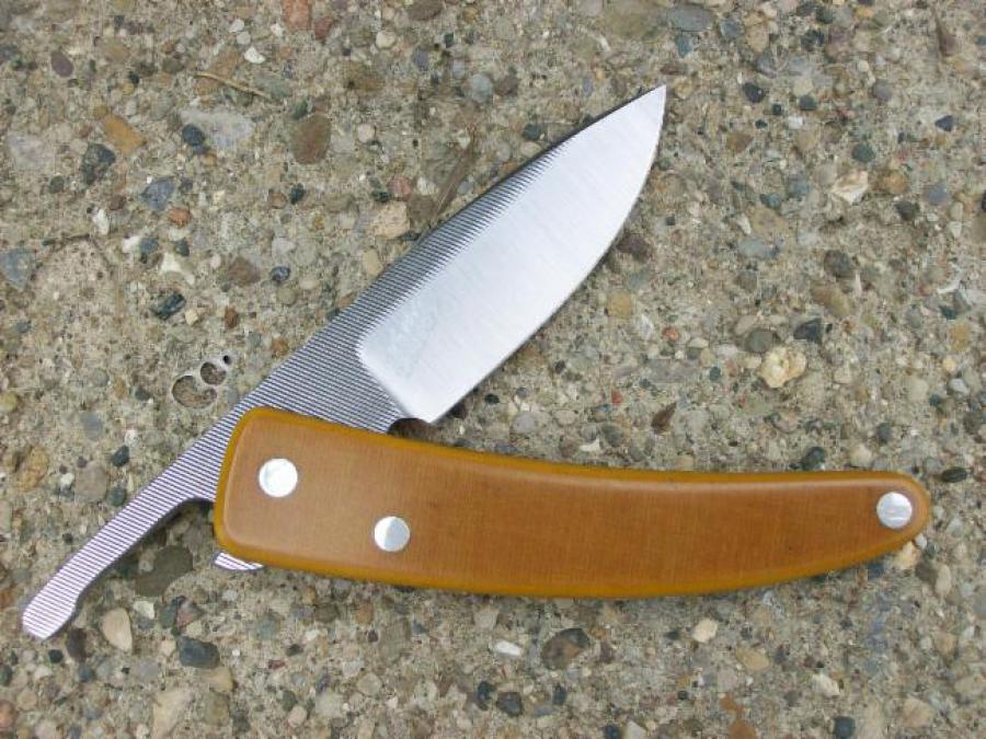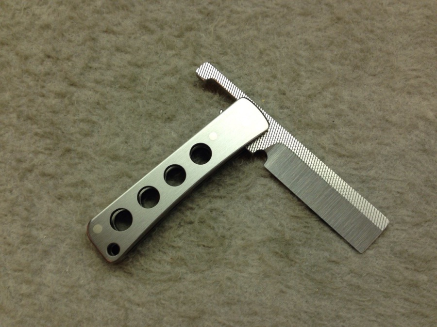 The knife is beautiful, a true work of art. Your waiting list was long but it was worth the wait. The titanium works perfectly with the rasp blade and is lighter than I expected. The pintail handle reminds me a little of an old straight razor handle.